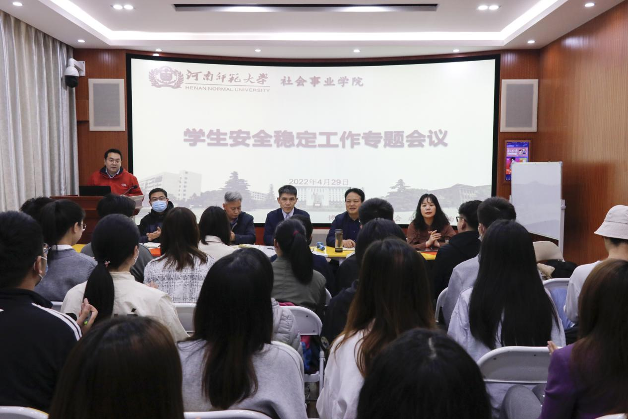 4月29日下午,社会事业学院于崇智楼503室召开学生安全稳定工作专题会议。学院领导班子、专兼职辅导员及各年级学生代表参与其中。本次会议由院团委书记田嘉玺主持。
