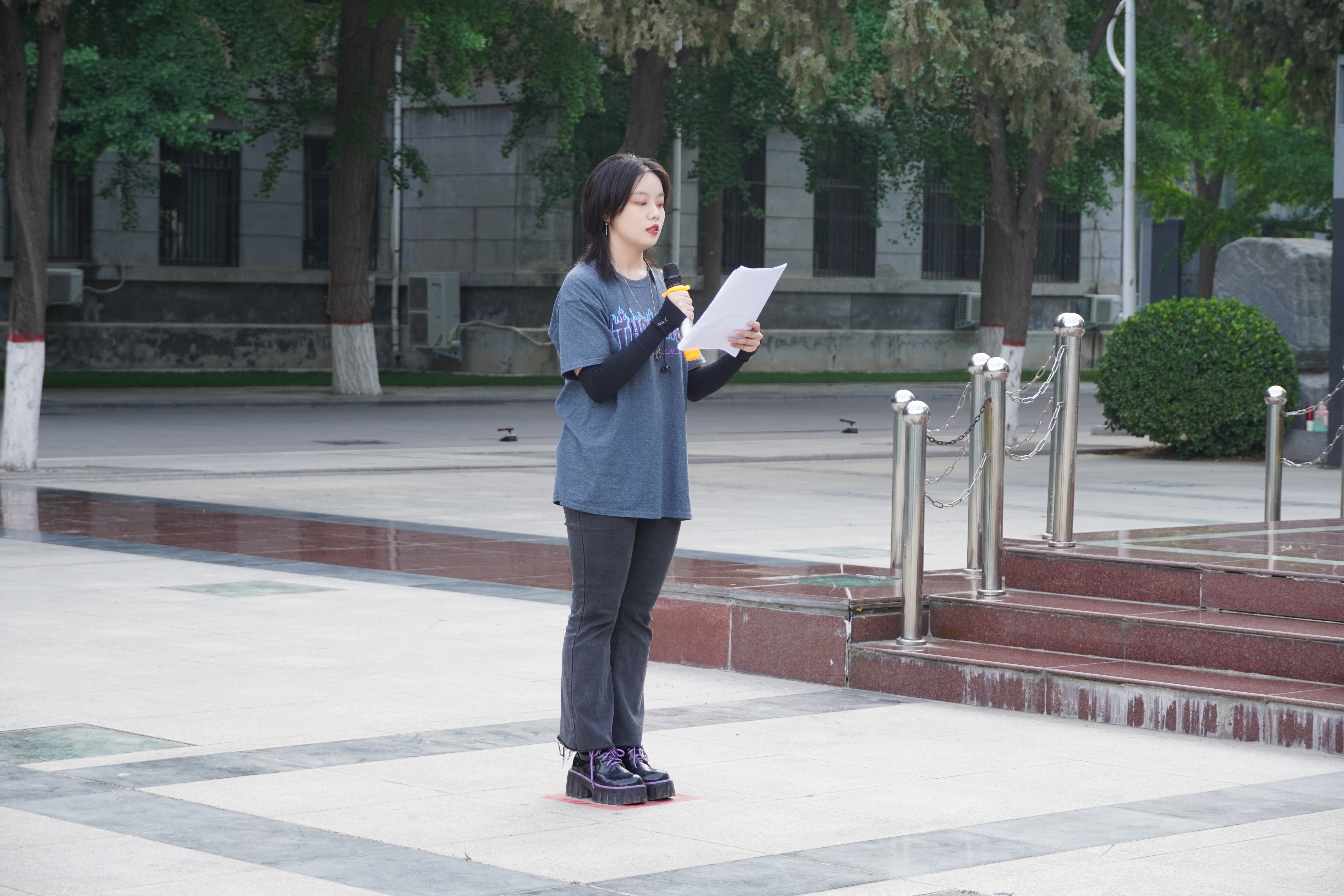 首先,社会事业学院2021级劳动与社会保障班班长焦柯琳作为学生代表,做“以青年理想,筑时代华章”为主题的国旗下演讲。她真诚地分享自己担任班干部期间学生工作的经历,始终用行动诠释责任,用责任磨砺自己,最后以真情感动同学,并借此呼唤同学们克服本领恐慌,补齐能力短板,肩负起时代赋予青年的责任,在热血中扬帆,在奉献中远航。