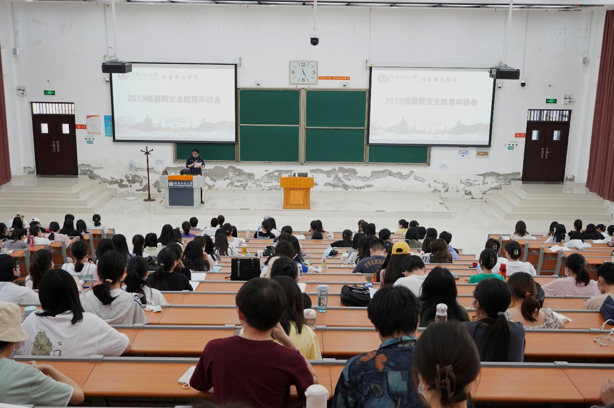 5月20日下午,社会事业学院于文昌楼102教室召开了2019级暑期安全教育年级会。2019级专职辅导员徐远健、2019级兼职辅导员黄义香及2019级全体学生参与其中。本次会议由徐远健主持。