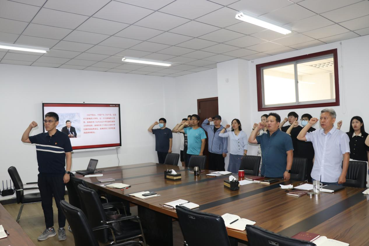 本次活动以党课的方式进行,首先,瞿洪明带领大家回顾了我们党的百年历程,从一大的50多名党员到十九大的9600多万名党员;从一大的半殖民地半封建社会下的政党到十九大的世界第一大执政党;从一大开始中国革命到七大取得新民主主义革命胜利,再到十二大开始建设有中国特色的社会主义,一直到十九大中国特色社会主义进入新时代的关键时期。党课深入讲解了每一次党代会的历史背景、历史使命和在党的百年奋斗历史中所做出的贡献。他指出,全体教师党员要从中国共产党伟大建党历程中汲取力量、坚定理想信念,不断增强守初心、担使命的思想和行动自觉,为学校事业高质量发展贡献力量,以优异成绩迎接党的二十大胜利召开。最后,全体党员一起重温入党誓词。铿锵的誓词,让党员们热血沸腾,仿佛重回当初加入党组织的那一刻,更加坚定理想信念,提高了党性认识。