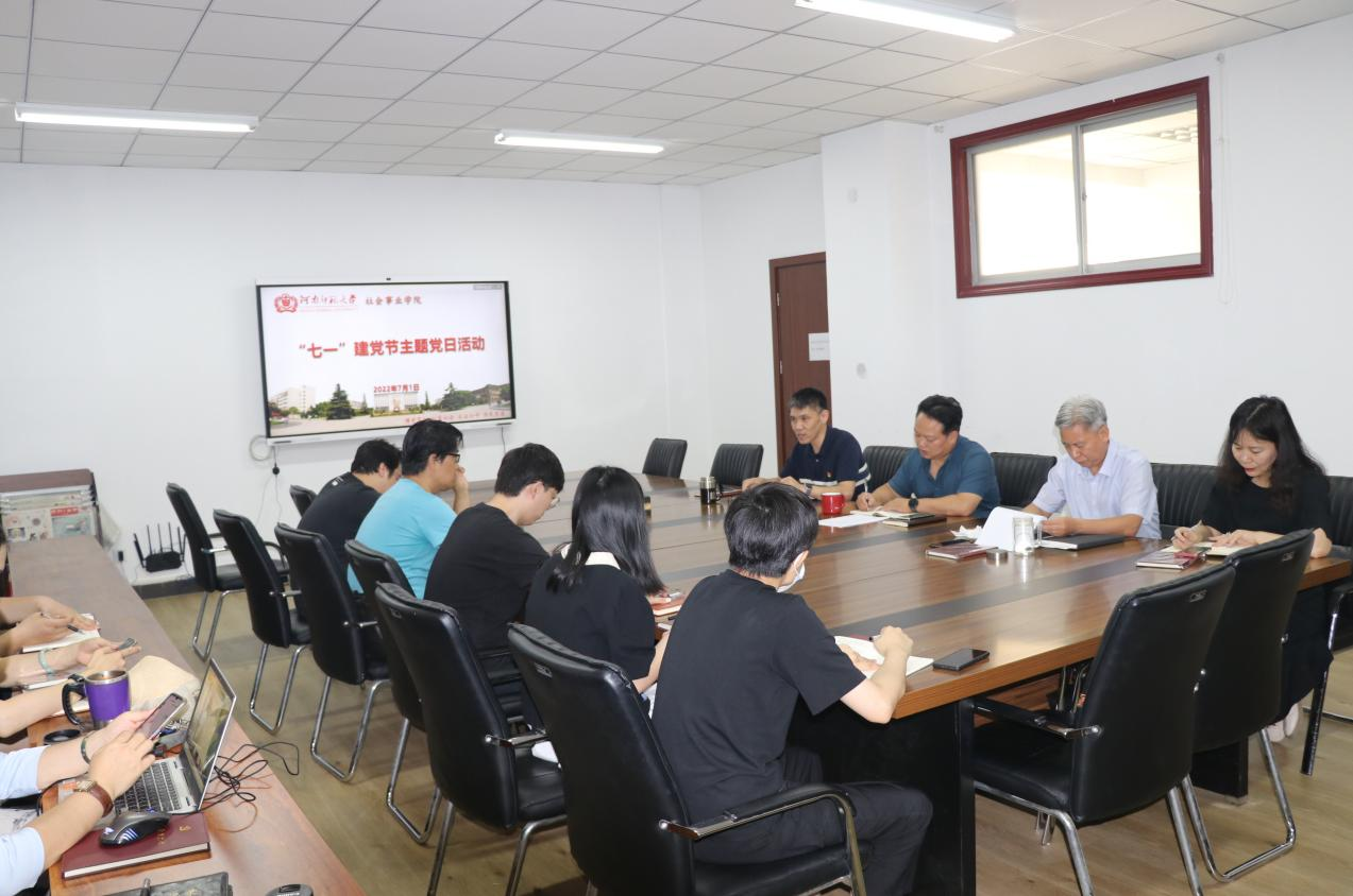 为庆祝中国共产党建党101周年,7月1日上午,社会事业学院党委于崇智楼210开展“七一”建党节主题党日活动。活动由院党委书记瞿洪明主持,全体教师党员参与其中。
