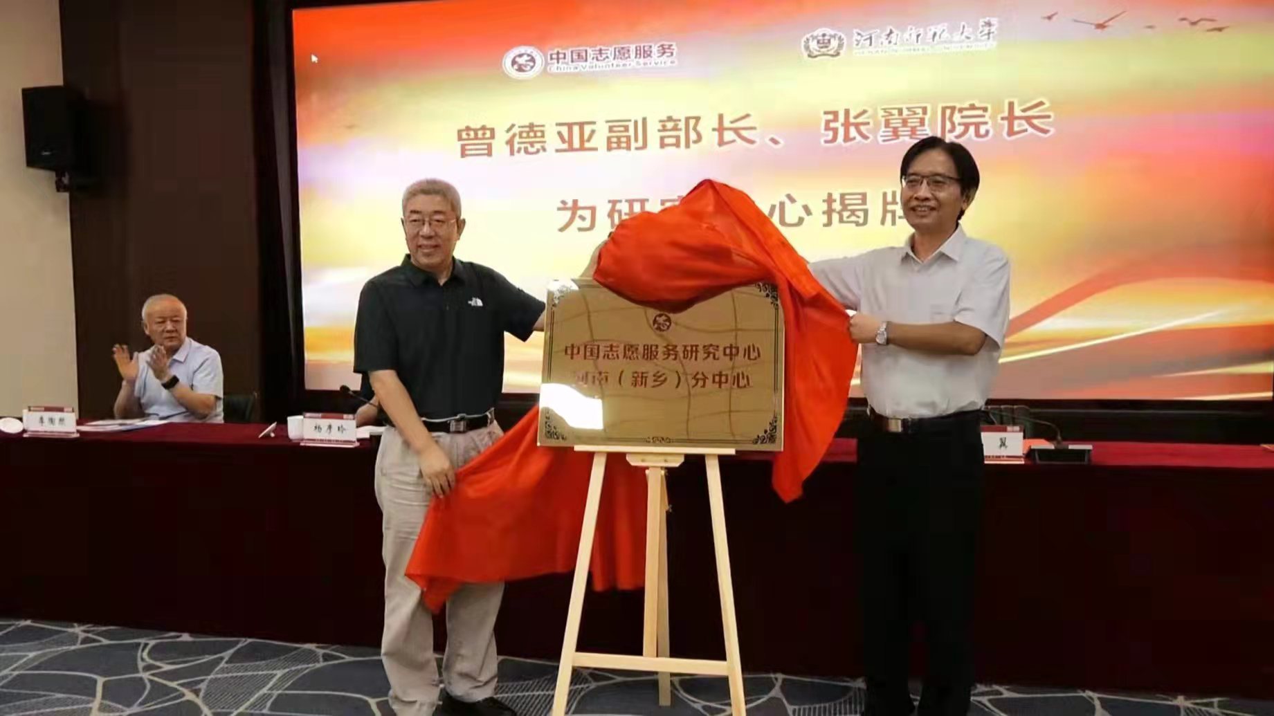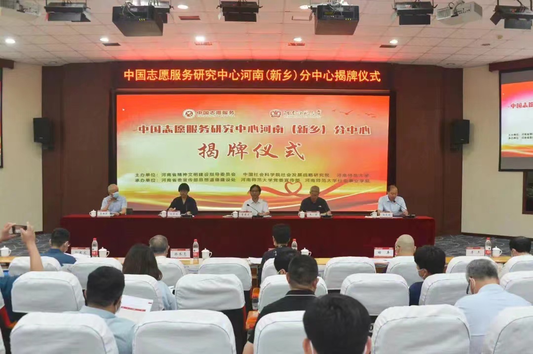 8月9日上午,中国志愿服务研究中心河南(新乡)分中心揭牌仪式在河南师范大学举行。河南省委宣传部常务副部长曾德亚,中国社会科学院社会发展战略研究院院长、中国志愿服务研究中心主任张翼,新乡市委常委、宣传部部长杨彦玲,郑州师范学院党委副书记李陶然出席揭牌仪式。仪式由河南师范大学党委副书记、工会主席梅宪宾主持。