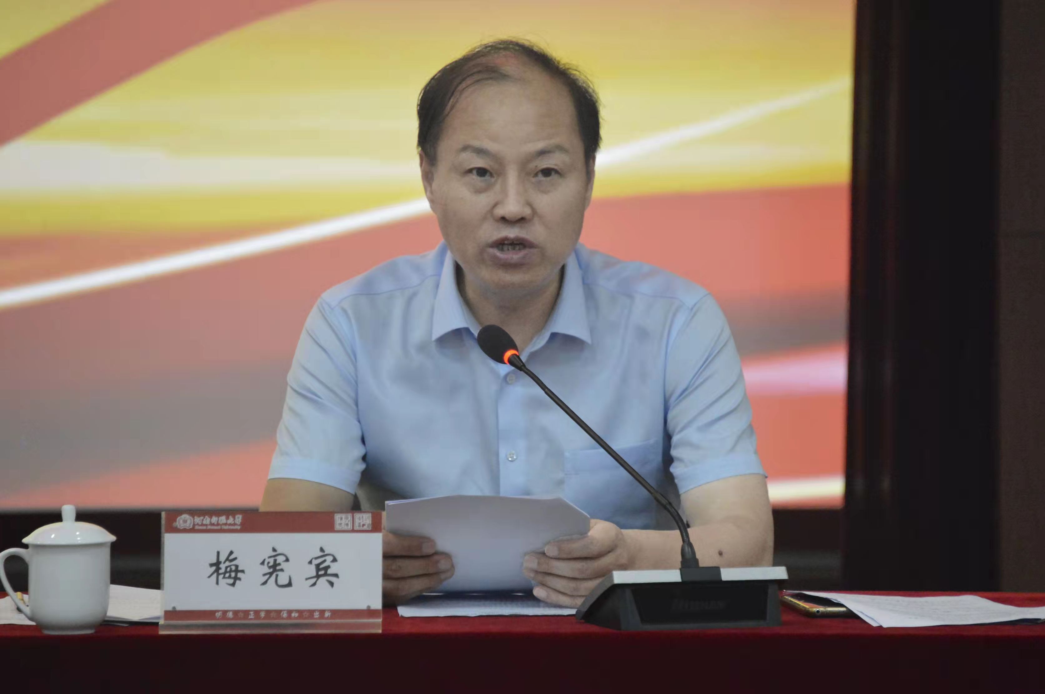 梅宪宾代表河南师范大学致辞。他介绍了我校发展的历史沿革和办学成就,阐述了中国志愿服务研究中心河南(新乡)分中心成立的背景和现实意义。他强调将以分中心成立为契机,大力弘扬志愿服务精神,积极赋能志愿服务研究,深化交流合作,精心打造志愿服务这张亮丽名片和金字招牌。