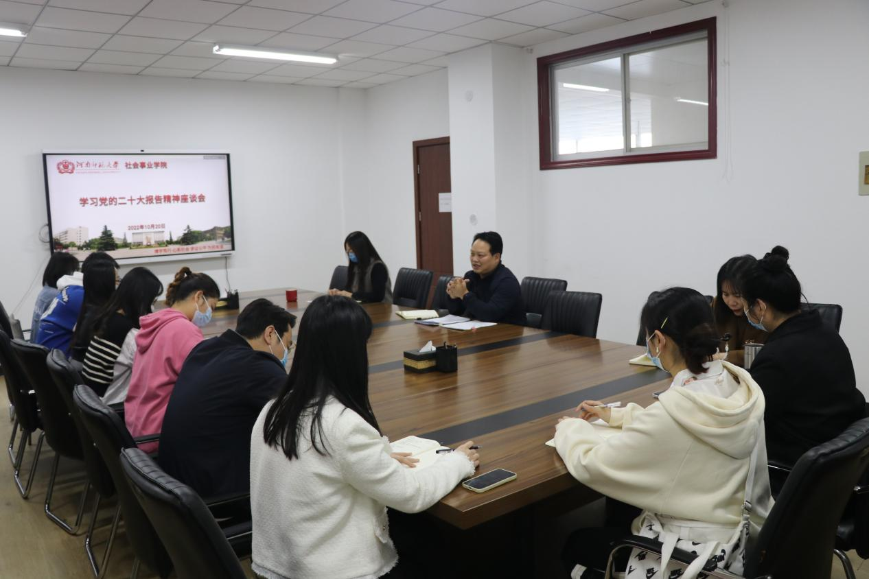 为深入学习贯彻党的二十大精神,10月20日下午,社会事业学院召开学习党的二十大精神座谈会,学院领导班子、科级干部、教师和学生代表参加座谈。会议由院长魏雷东主持。