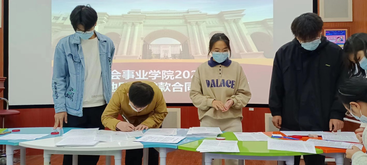 为帮助家庭经济困难学生安心求学,缓解他们的后顾之忧,进一步推进校园地助学贷款工作长效有续开展。11月10日,社会事业学院于崇智楼503室召开2022年度校园地助学贷款合同签订会议。学院申请校园地助学贷款的同学及相关工作人员参与会议。