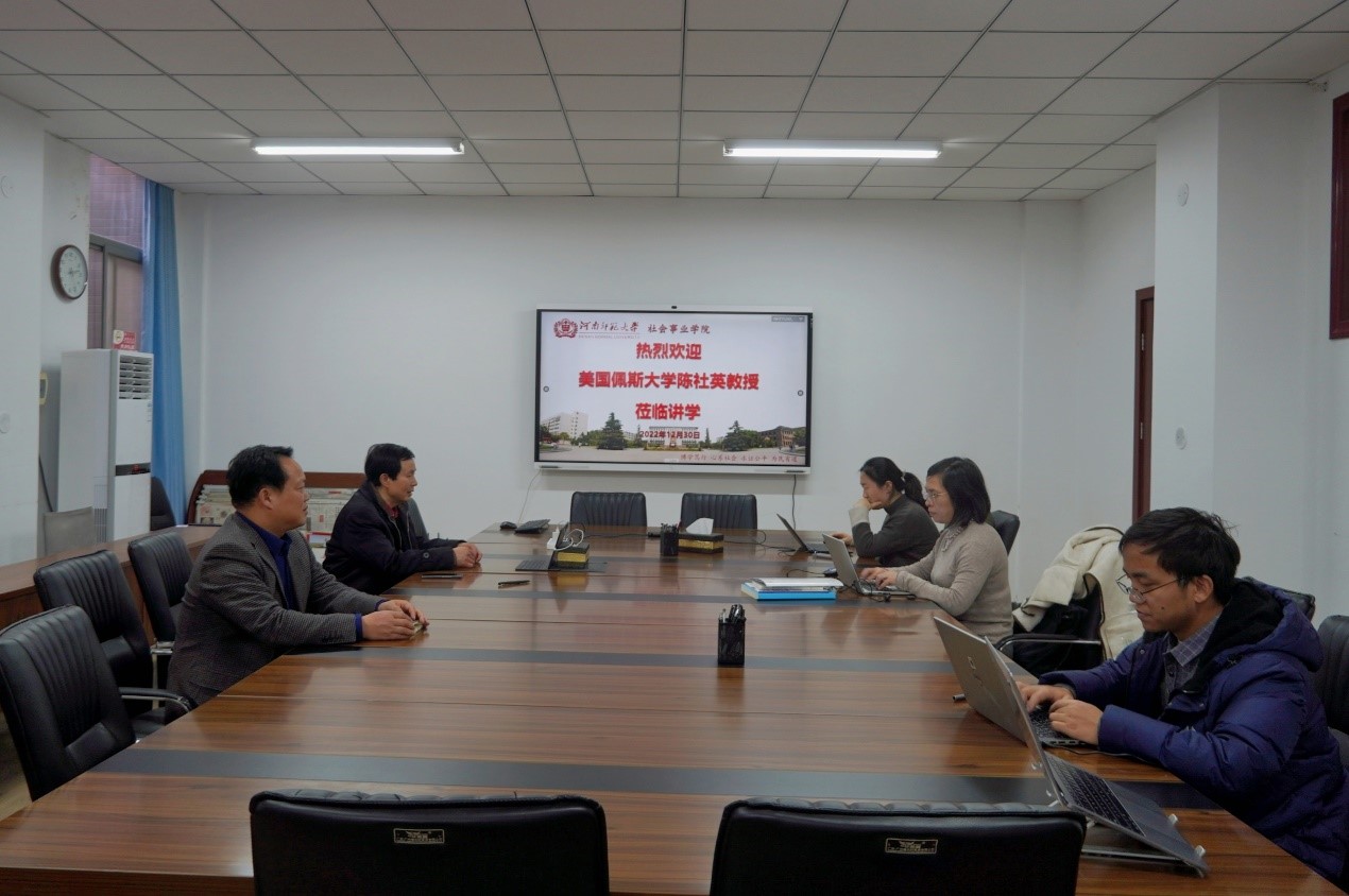 为推动学术交流,拓展我院师生国际视野,12月30日下午,美国佩斯大学公共管理终身教授陈社英受邀于崇智楼二楼会议室举办“国际期刊英文论文写作及发表经验漫谈”学术工作坊。我院教师及相关专业研究生通过线上线下相结合的方式参加本次讲座。讲座由院长魏雷东主持。