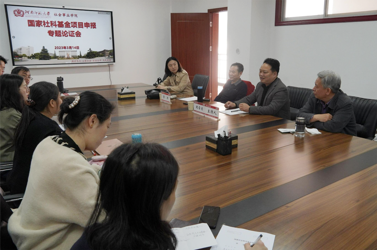 3月14日上午,社会事业学院于崇智楼210会议室举行2023年度国家社科基金项目申报专题论证会。会议邀请国家社会科学基金项目评审专家、华中科技大学雷洪教授进行指导,学院拟申报国家社科基金项目的教师参加会议。会议由院长魏雷东主持。