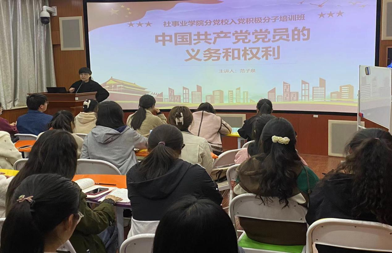 4月3日晚,社会事业学院分党校入党积极分子培训班于崇智楼503室进行。学院共41名入党积极分子参与其中。本次党课由院党政办公室主任范子泉担任主讲人。
