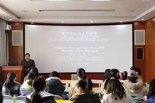 12月8日上午,应社会事业学院邀请,清华大学社会工作研究中心创始主任、美国佩斯大学终身教授陈社英在崇智楼503室作了题为“青少年社会工作的科学理论基础”的讲座。学院相关专业教师及学生五十余人共同聆听此次讲座。讲座由社会事业学院副院长陈妍娇主持。讲座中,陈社英以社会工作“反思实践者”的角度出发,从“青少年社会工作的科学理论基础”“青年作为特殊群体”“青少年问题与社会服务”“青少年工作领域”“青少年社会工作...