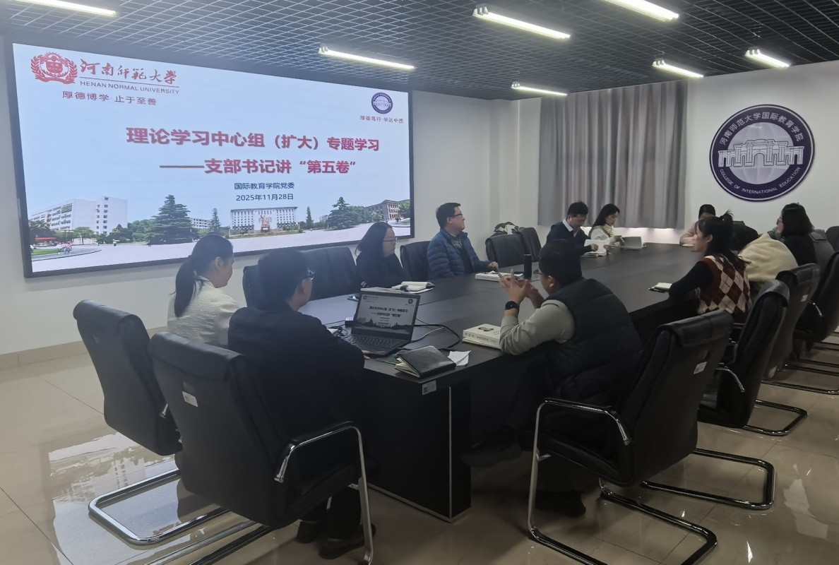 党的创新理论发展到哪里,理论学习就要跟进到哪里,为干事创业筑牢思想根基、涵养信仰志气。为学深悟透《习近平谈治国理政》第五卷的精髓要义,11月28日,国际教育学院党委理论学习中心组开展支部书记讲“第五卷”第二次专题学习。会议由学院党委书记田小勇主持,学院党委委员、班子成员、支部书记和教师党员代表参加学习。