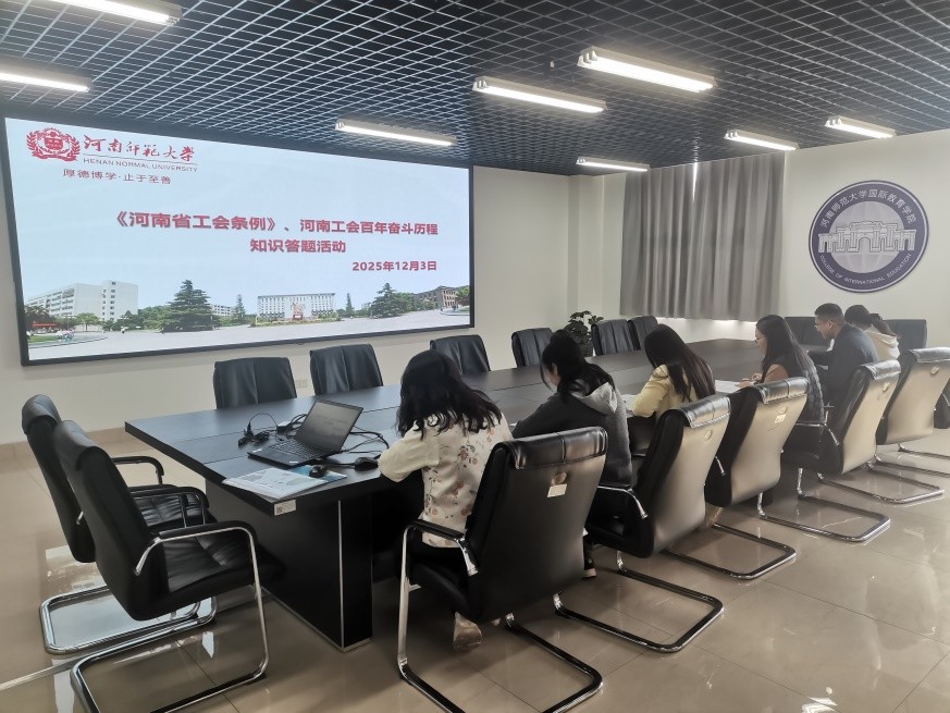 12月3日上午,国际教育学院与佩皮尼昂国际理工学院共同组织全体分工会委员,在求真楼709会议室参加了由校工会举办的“《河南省工会条例》、河南工会百年奋斗历程”知识答题活动。