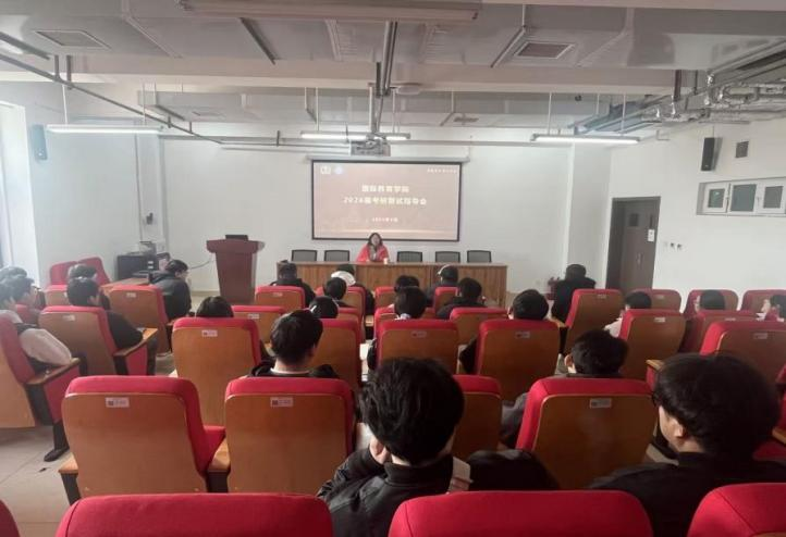 会议伊始,国际教育学院院长赵扬代表学院,向顺利通过考研初试的同学们致以祝贺。她勉励同学们稳住备考心态、锚定升学目标、做好充分准备,将大学四年的知识积淀与专业素养在复试舞台上充分展现。