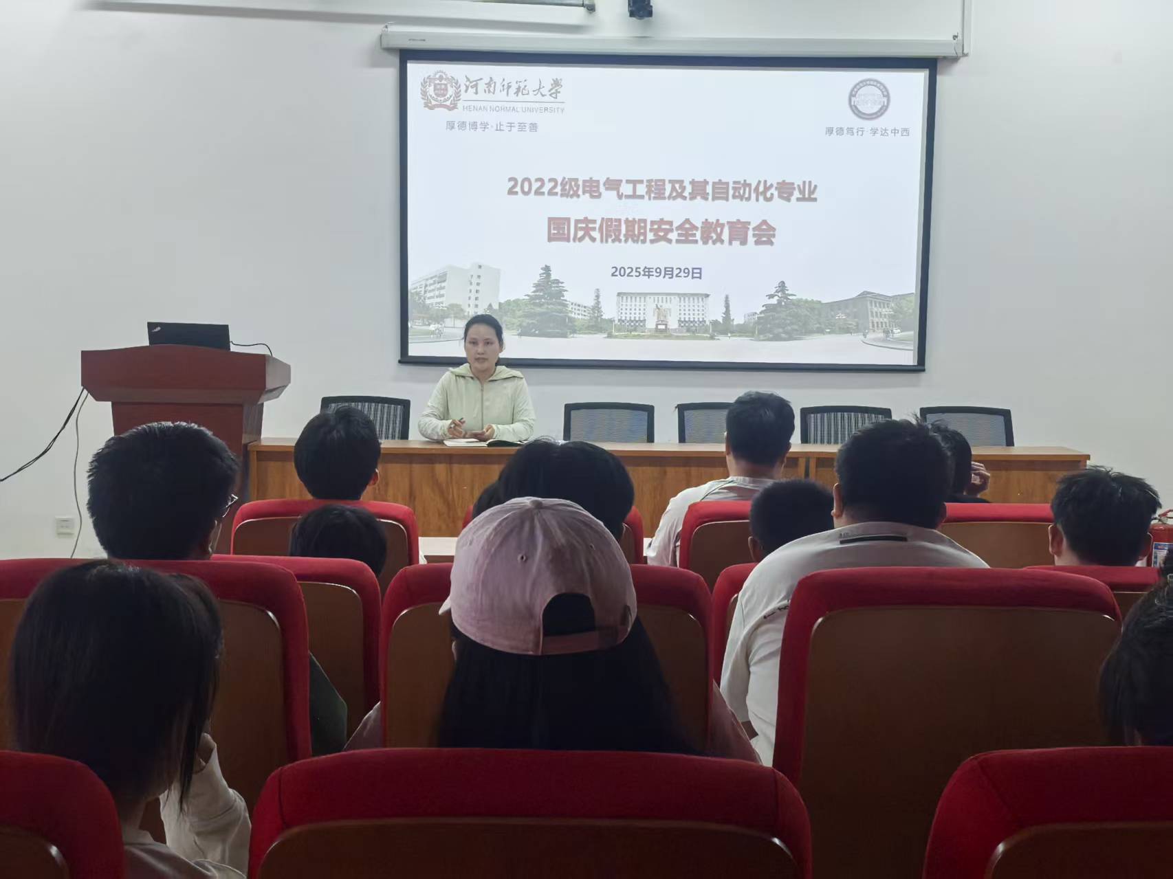 国庆假期人员流动大,是各类安全事件的易发、高发期。为切实做好国庆长假期间的学生安全教育工作,增强全体学生的安全意识,防范各类安全事故的发生,确保同学们度过一个平安、愉快、和谐的假期,9月28日,我院分年级召开了“国庆假期学生安全教育培训会”。