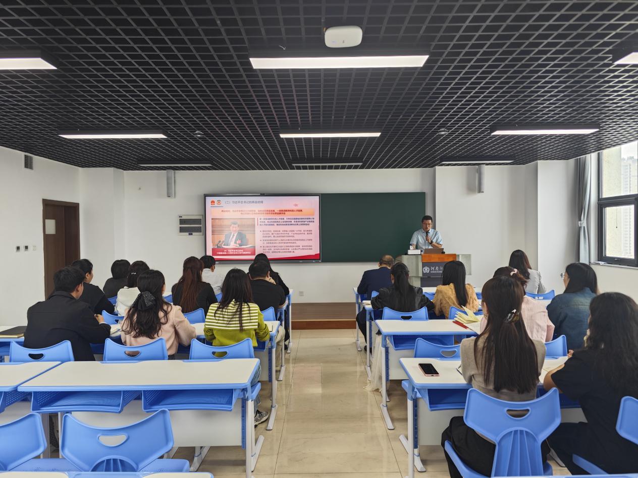 4月14日下午,佩皮尼昂国际理工学院在实训楼902教室开展“学习宣传贯彻全国两会精神 奋力谱写‘十五五’发展新篇章”主题宣讲会。学院党总支副书记武光辉担任主讲,学院全体教师、学生党员及预备党员参与此次学习。