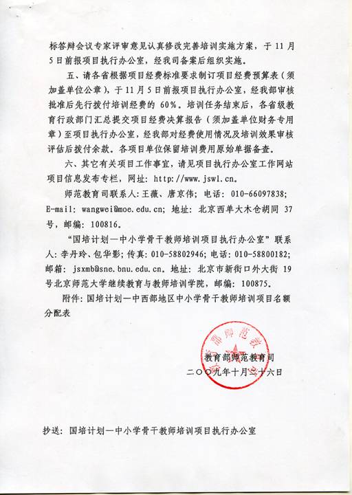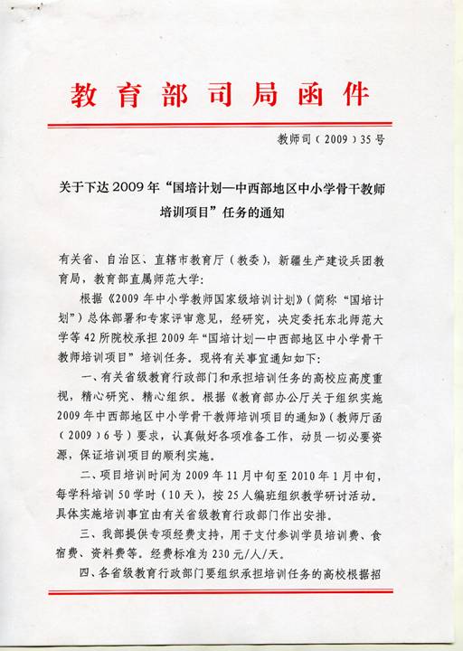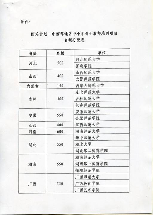 关于下达“国培计划-中西部地区中小学骨干教师培训项目”任务的通知