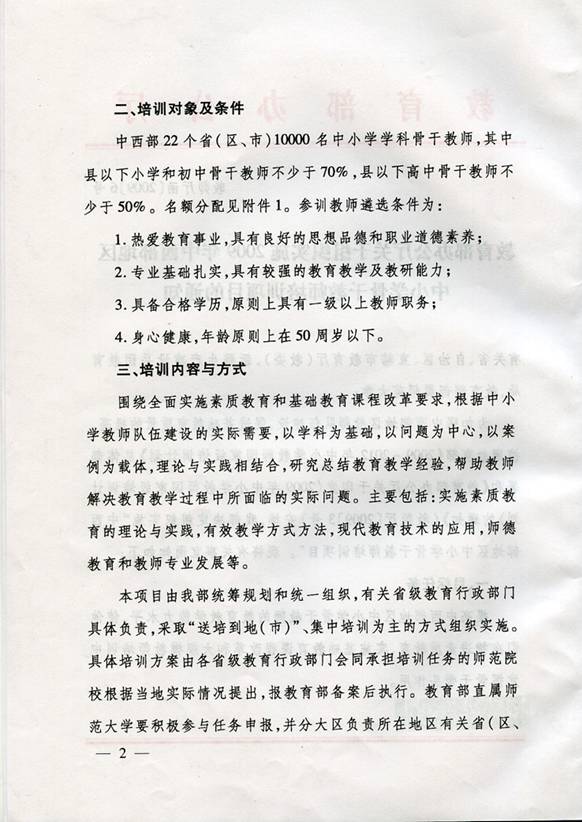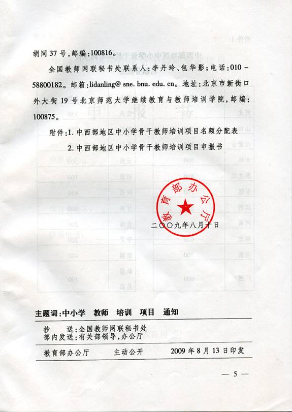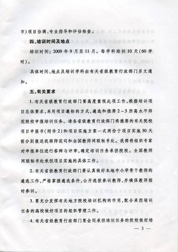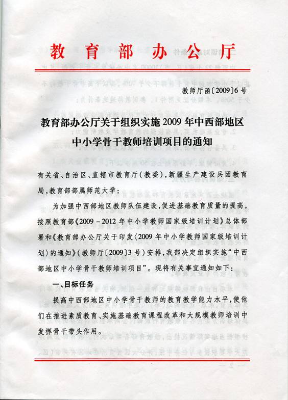 教育部办公厅关于组织实施2009年中西部地区中小学骨干教师培训项目的通知