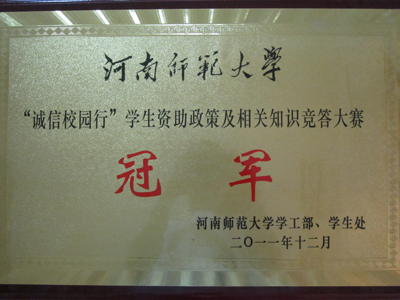 河南师范大学“诚信校园行”学生资助政策及相关知识竞答大赛冠军