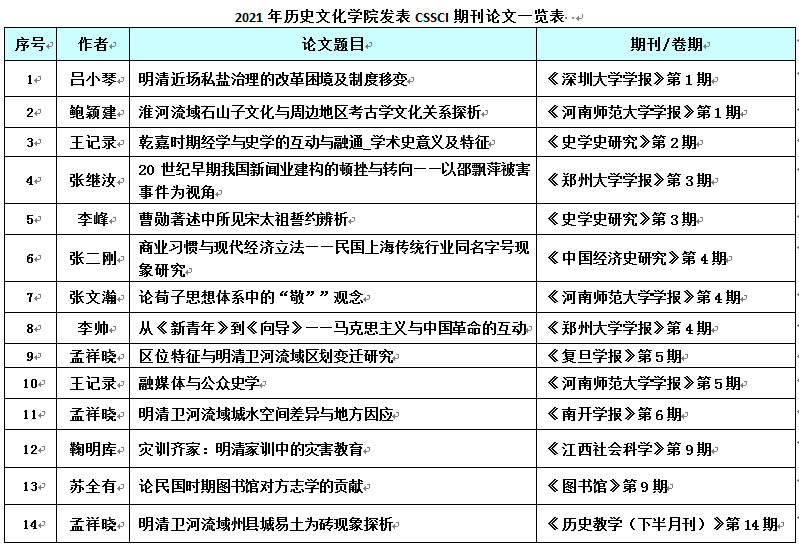 2021年历史文化学院发表CSSCI期刊论文一览表