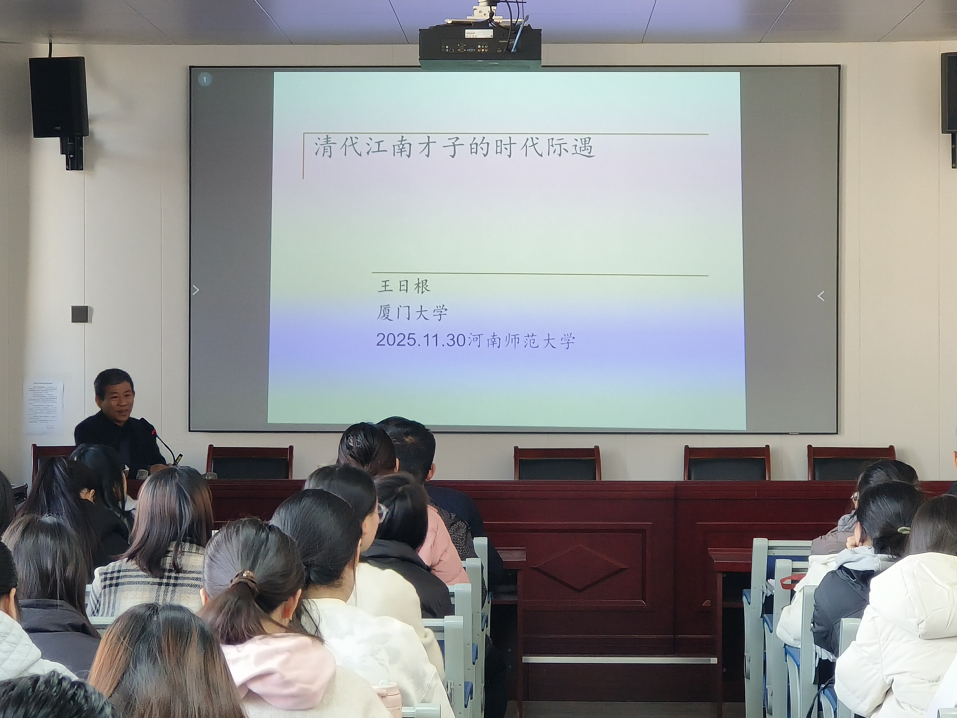 2025年11月30日上午,应历史文化学院邀请,厦门大学王日根教授在崇德楼406进行讲学分享,报告题目是“清代江南才子的时代际遇”。本次讲座由历史文化学院院长李峰主持,2023级本科生旁听了本次讲座并参加了现场交流。