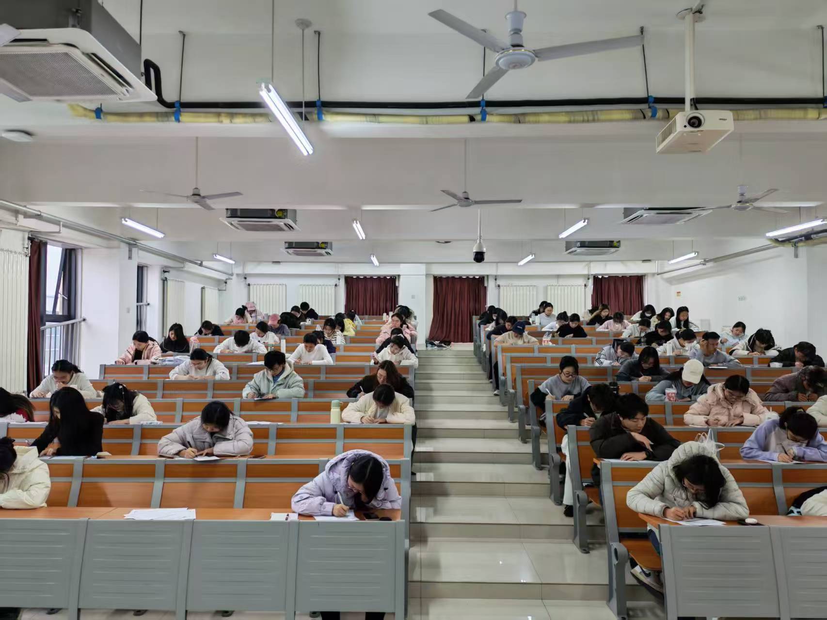 本次模拟严格遵循考试流程,涵盖了写作、听力、阅读和翻译四大板块,并由监考人员进行时间提示。学院提前完成座位分配、试题准备等考务工作,全力保障考试有序进行。考场上,同学们严格遵守考场纪律,认真作答,展现出学院学子良好的考风。参与学生表示,此次模拟有助于熟悉考试节奏、缓解紧张情绪,及时查漏补缺,抓住复习重点,提高复习效率和质量。