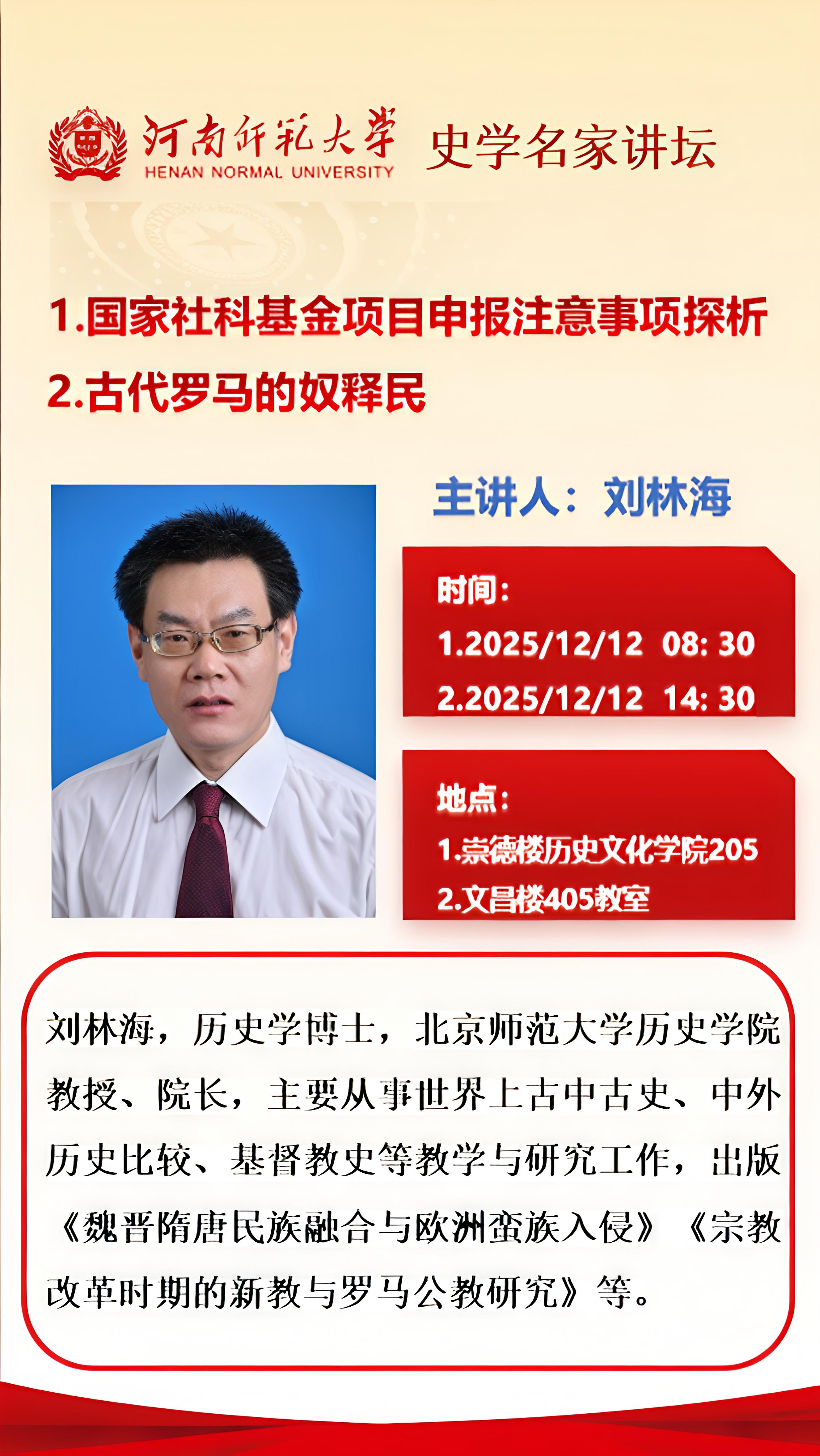 刘林海,历史学博士,北京师范大学历史学院教授、院长,主要从事世界上古中古史、中外历史比较、基督教史等教学与研究工作,出版《魏晋隋唐民族融合与欧洲蛮族入侵》《宗教改革时期的新教与罗马公教研究》