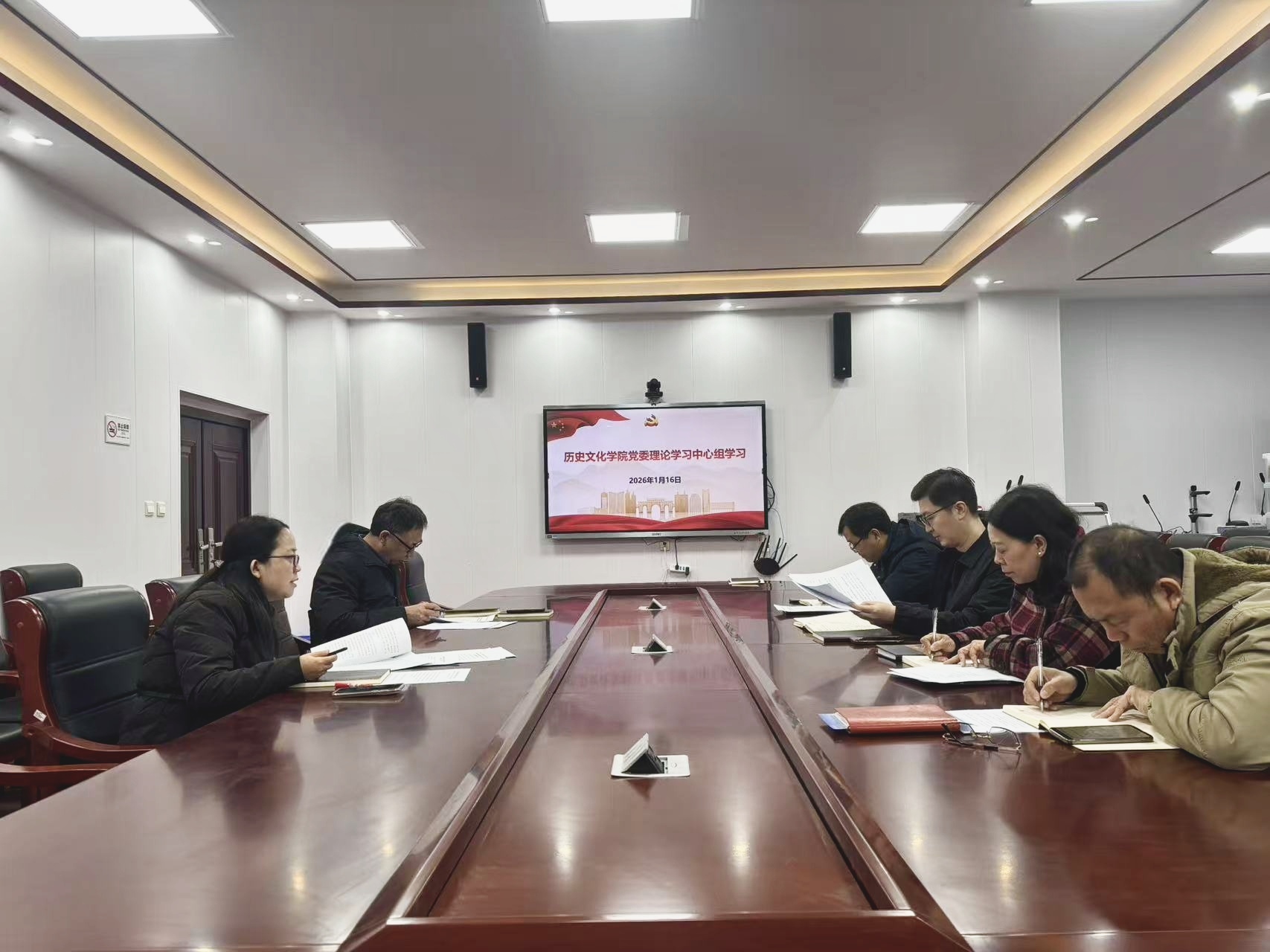 1月16日上午,历史文化学院在305会议室召开党委理论学习中心组学习,专题学习习近平总书记在二十届中央纪委五次全会上的重要讲话精神。学院领导班子全体成员参加会议,会议由党委书记肖亮亮主持。