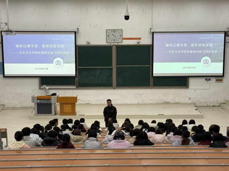 为进一步加强班级建设,提升班委队伍的综合素质与工作能力,更好地服务同学成长与班级发展,3月10日下午,历史文化学院于文昌楼102教室开展“锤炼过硬本领,服务班级发展”班委综合能力培训活动。本次培训由2025级辅导员庞振康主持,2025级全体班委参加。