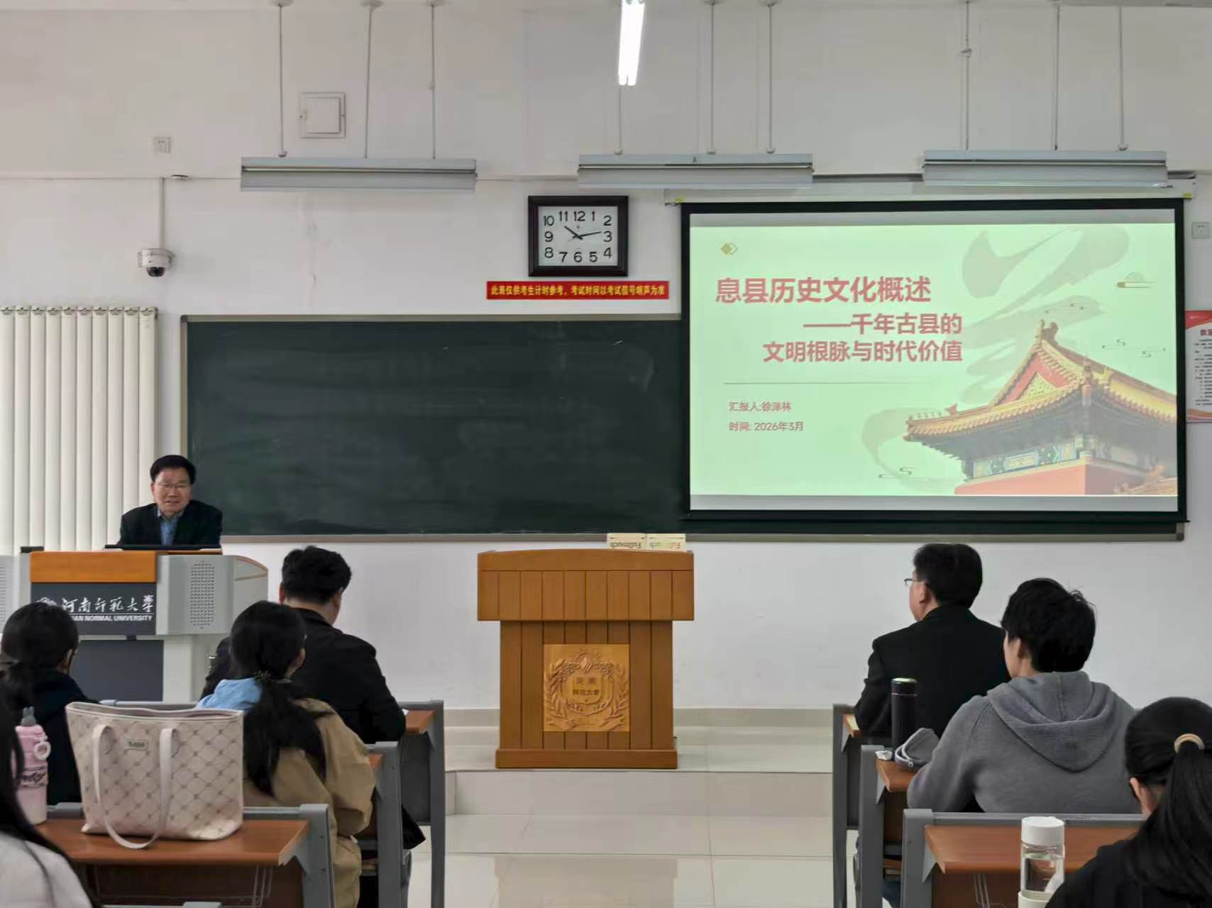 2026年3月30日,信阳息县第一高级中学副科级干部、河南省中学历史特级教师徐泽林应邀来我院举办学术讲座。讲座由历史文化学院鲍颖建副院长主持,学院师生80余人参加活动。