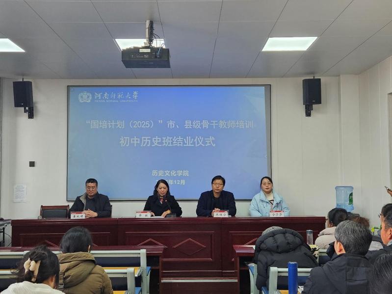 2025年12月17日上午,“国培计划(2025)”——农村骨干教师能力提升培训项目市级、县级骨干教师培训初中历史班结业仪式在河南师范大学历史文化学院406报告厅举行。河南师范大学历史文化学院副院长薛敏、本期培训团队工作人员以及全体学员参加了结业仪式。仪式由历史文化学院乔传宁博士主持。结业仪式上,全体人员共同观看了记录10天培训历程的回顾短片,从专题讲座到课堂观摩,从小组研讨到实践演练,一帧帧画面生动再现了学员们在...