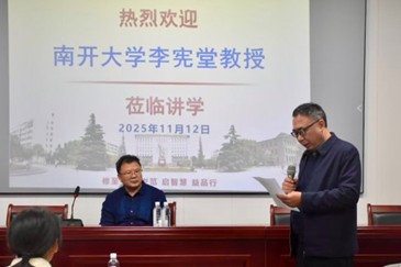 11月12日,南开大学历史学院教授、博士生导师李宪堂受邀在历史文化学院406教室作题为《中国传统文化的框架体系及其特征》的讲座。本场讲座由历史文化学院院长李峰教授主持,部分师生参与。讲座中,李宪堂教授从思想史与文化哲学视角出发,系统阐释了以“道、圣、王”三位一体为核心的“大一统”文化结构,揭示了中国传统世界观中宇宙秩序、伦理价值与政治权力的高度统一。首先,李宪堂指出,“大一统”不仅是一种政治理念,更是中...