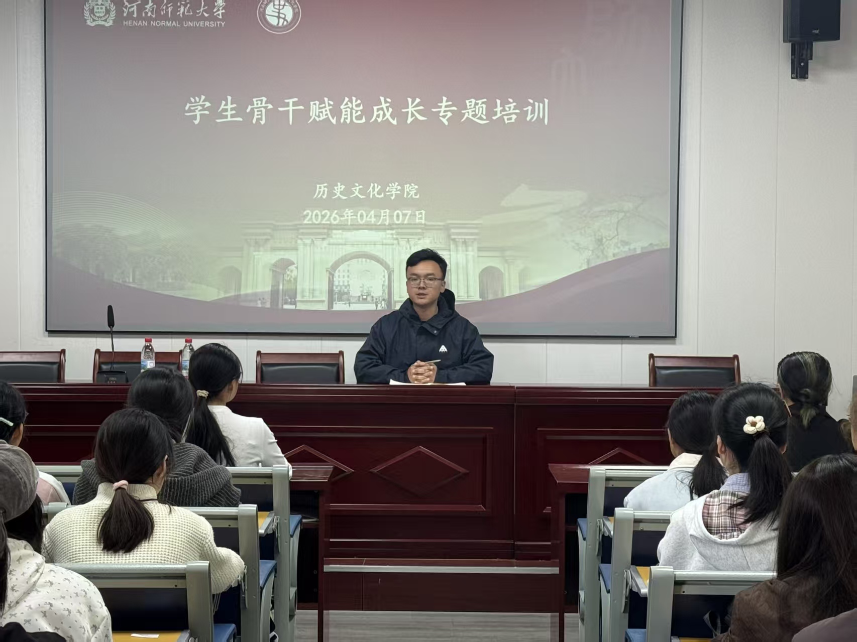 为全面提升学生骨干综合素质与工作能力,进一步提高学院各学生部门协调协作效率与工作成效,4月7日,历史文化学院于崇德楼406室举办学生骨干赋能成长专题培训。本次培训由学院团委副书记庞振康主持,全体学生骨干参加。