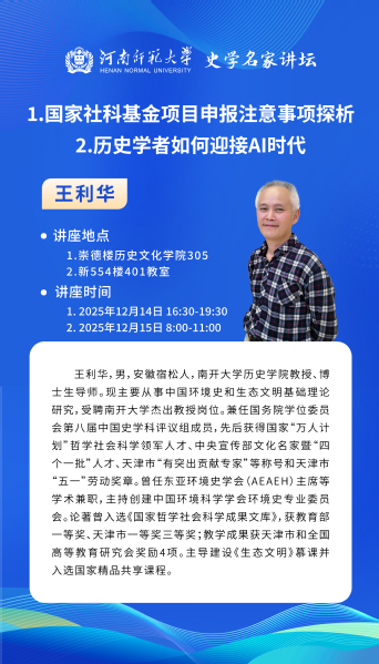 南开大学王利华教授将应邀来我院讲学(12月14、15日)
