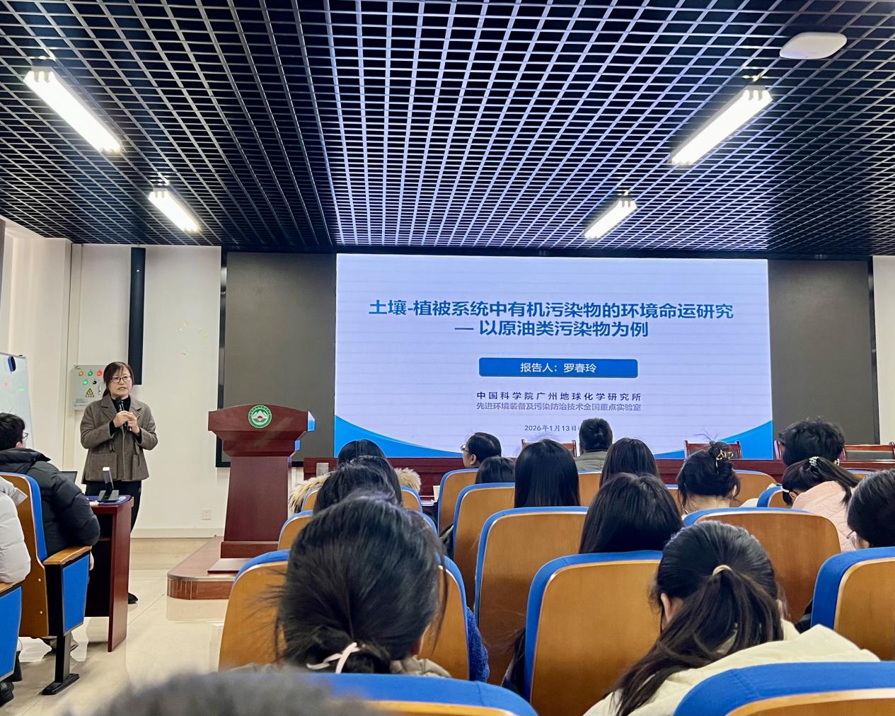 1月13日上午,应环境学院邀请,中国科学院广州地球化学研究所罗春玲研究员,于东校区实训楼1509会议室,为我院师生进行了“土壤-植被系统中有机污染物的环境命运研究——以原油类污染物为例”的精彩学术报告。我院相关学科学术带头人、骨干教师和研究生等200余人参加了本次学术交流活动。报告由环境学院邹威副院长主持。