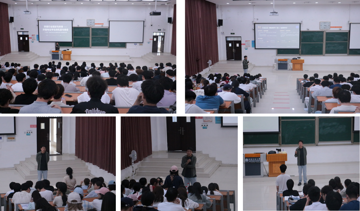 贾志鹏立足环保行业现状、深入解读“十五五”生态环保规划及《生态环境法典》相关政策,结合河南省环保行业发展趋势,全面剖析了环境专业的就业方向与发展前景。他结合自身经历,为环境类本科生如何规划大学四年的学习与生活提出了宝贵建议。讲座内容丰富、案例鲜活,既有行业前沿动态的解读,也有成长路径的指引,为本科生搭建了一座从校园走向职场的沟通桥梁,让同学们对环保行业有了更直观、更深刻的认知。
