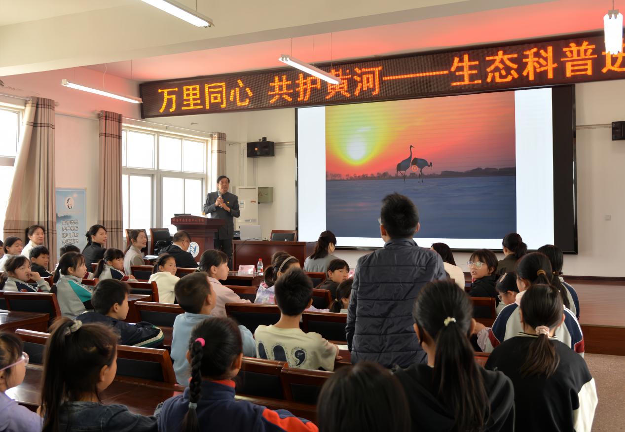 4月24日,在河南省第45届“爱鸟周”期间,环境学院联合河南省环保联合会、河南孟电集团,赴辉县市南寨镇中心学校开展“万里同心 共护黄河 —— 生态科普进校园”公益志愿服务活动。我院董淑英教授、院团委副书记任洁带领20余名学生志愿者,与河南省环保联合会副会长蔡辉、秘书长王伟华等联合会工作人员,河南孟电集团党委委员、副总经理张福贵,及该校党支部书记、校长吕文成等共同参与,为该校200余名师生带来生动丰富的科普体验。
