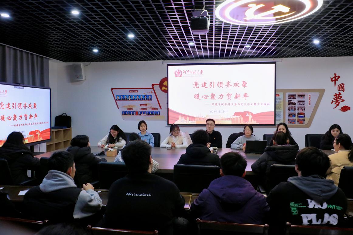 为提高党员凝聚力,进一步激发学生党员的社会责任感与使命感,我院本科生第二党支部于12月24日晚七点于实训楼1511开展“党建引领齐欢聚 暖心聚力贺新年”主题党日活动。支部全体党员、入党积极分子代表参加此次活动,活动由党支部书记宋旺旺主持。