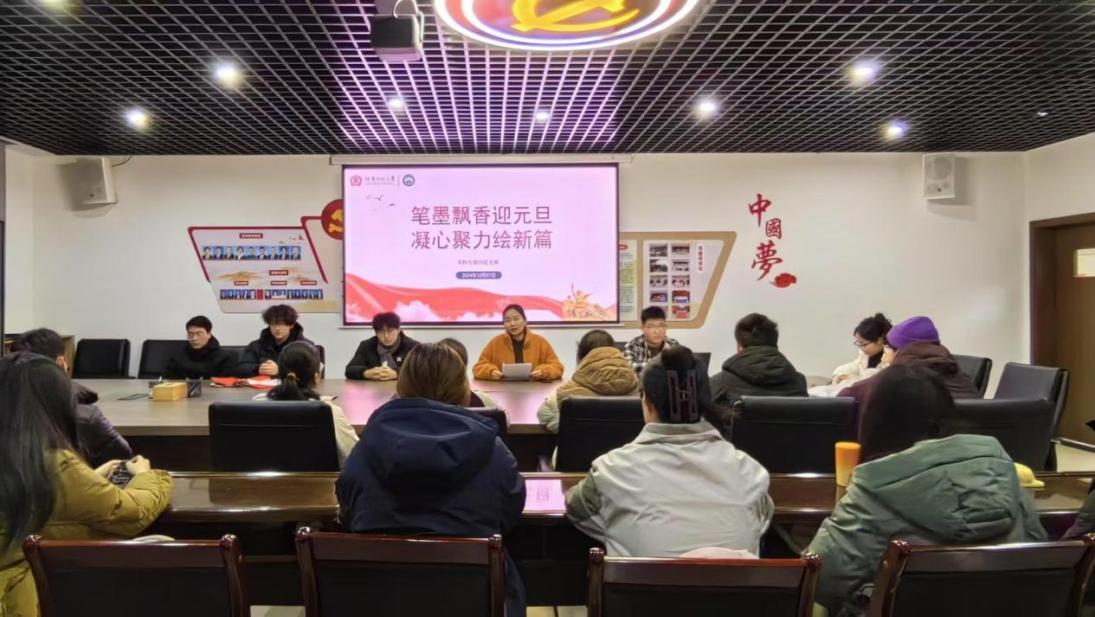 2024年12月27日晚,在元旦即将到来之际,我院本科生第四党支部举办了一场主题为“笔墨飘香迎元旦,凝心聚力绘新篇”的特色党日活动。本次活动旨在通过回顾抗美援朝历史,弘扬革命精神,同时结合传统文化,增强党员的党性修养和团队凝聚力,共同迎接充满希望的新一年。第四党支部书记任洁、全体预备党员及入党积极分子共同参加此次活动。