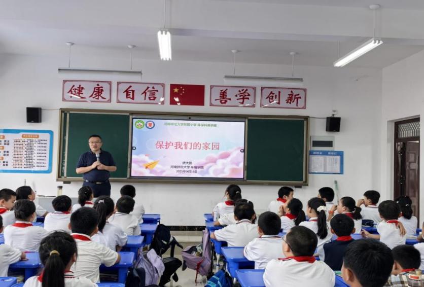 为践行习近平生态文明思想,进一步提高青少年学生的保护意识。9月16日下午,我院副院长武大鹏带队走进河南师范大学附属小学,为孩子们带来了一场主题鲜明、形式多样的环保科普活动,打开了探索生态环境保护的新窗口。