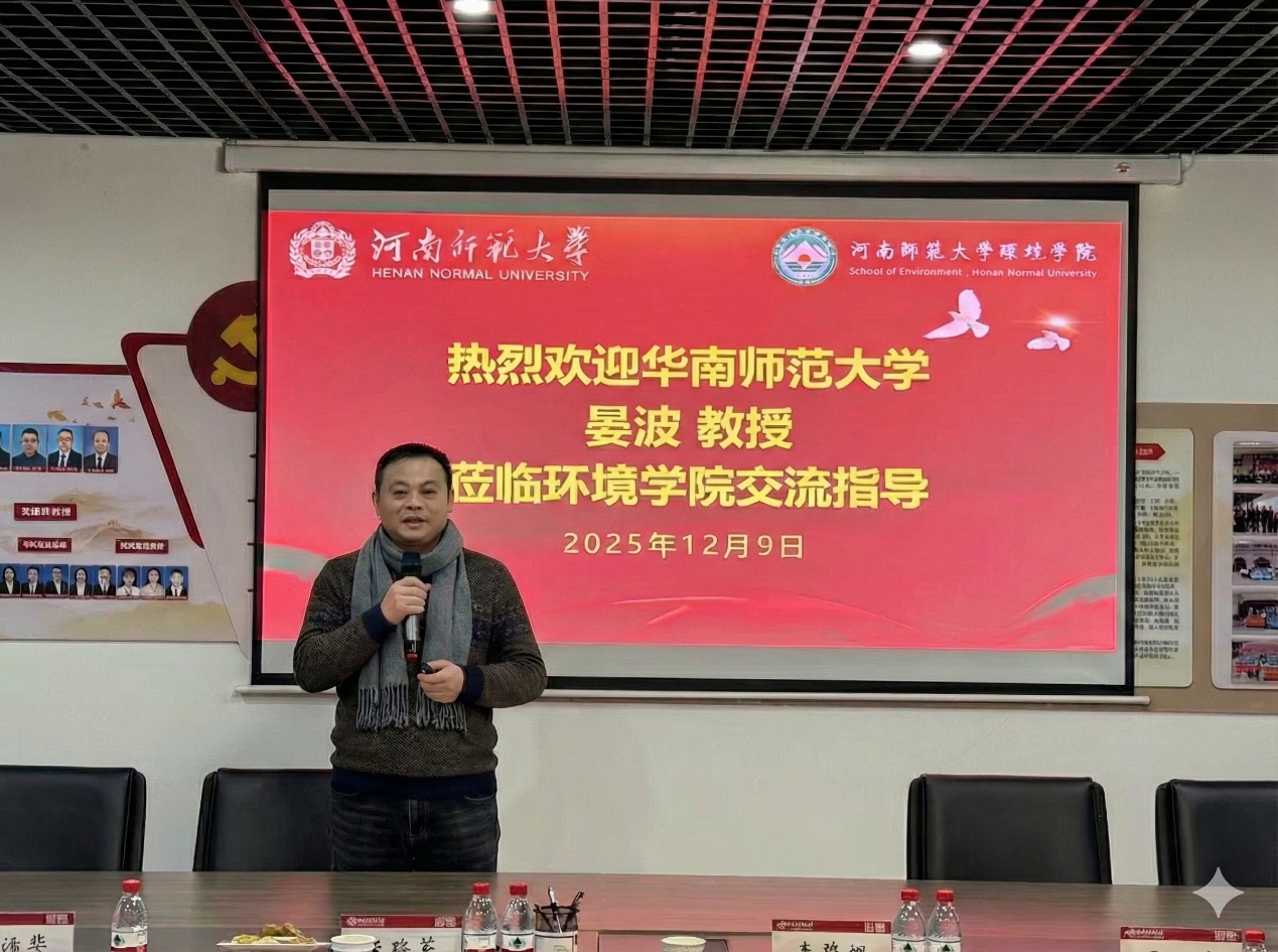 12月9日上午,应环境学院邀请,华南师范大学晏波教授来环境学院开展学术交流,并做学术报告。报告会由学院院长曹治国教授主持,学院学术带头人、青年教师及研究生百余人参加了本次活动。