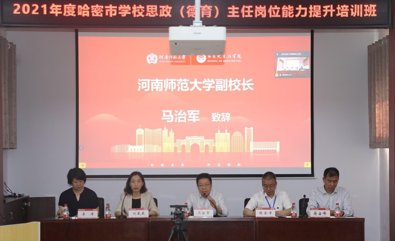 5月21日上午,由我校中小学教师校长研修院主办,继续教育学院和马克思主义学院承办的新疆哈密市思政(德育)主任岗位能力提升培训班,在平原楼报告厅举行了开班仪式。校党委常委、副校长马治军,哈密市委教育工委副书记胡全军,继续教育学院院长李津、马克思主义学院院长蔣占峰出席会议,仪式由河南省中小学教师校长研修院副院长刘葳葳主持。