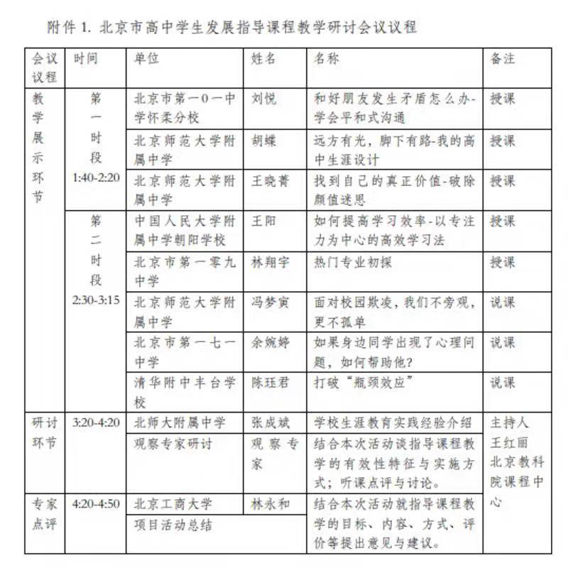 活动主题:北京市高中学生发展指导课程教学研讨会