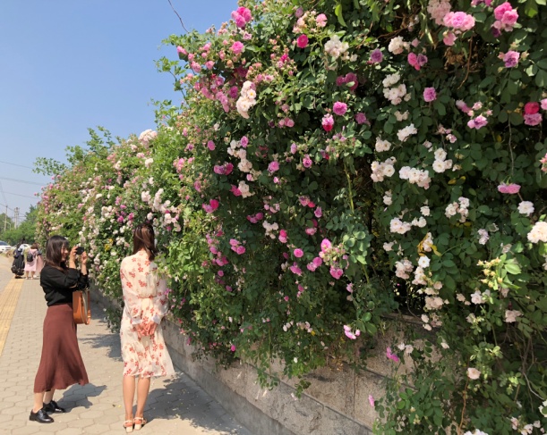 藤本月季属蔷薇亚科藤性灌木,干茎柔软细长呈藤木状或蔓状,可三季开花,且成簇花开放时散发浓香。校园管理中心工作人员将对绿植进行专业的日常维护和管理。