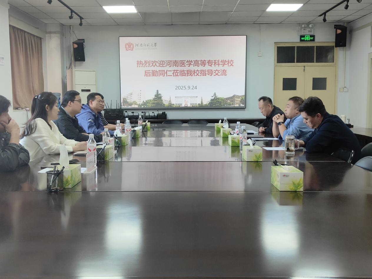 9月24日下午,河南医学高等专科学校总务处处长程鹏带队,携现教中心主任文帅、培训中心主任王莹、总务处伙食科科长张志强等5人组成的调研团,赴我校开展后勤保障工作专题调研交流,双方围绕后勤精细化管理、服务优化等核心议题深入对话。