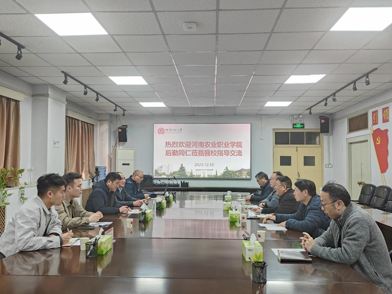 12月10日下午,河南农业职业学院后勤管理处副处长秦金永、黄新章,办公室主任高海柱,餐饮科科长孟燕飞等一行五人莅临我校,专题调研后勤服务保障工作。座谈会在我校文渊楼五楼529会议室召开,我校后勤保障部副部长李欣欣,综合科科长王志璞、餐饮部服务中心经理冯圣堂、校园管理中心经理赵波、修建中心经理杨贵银出席调研交流活动。会议由李欣欣主持。