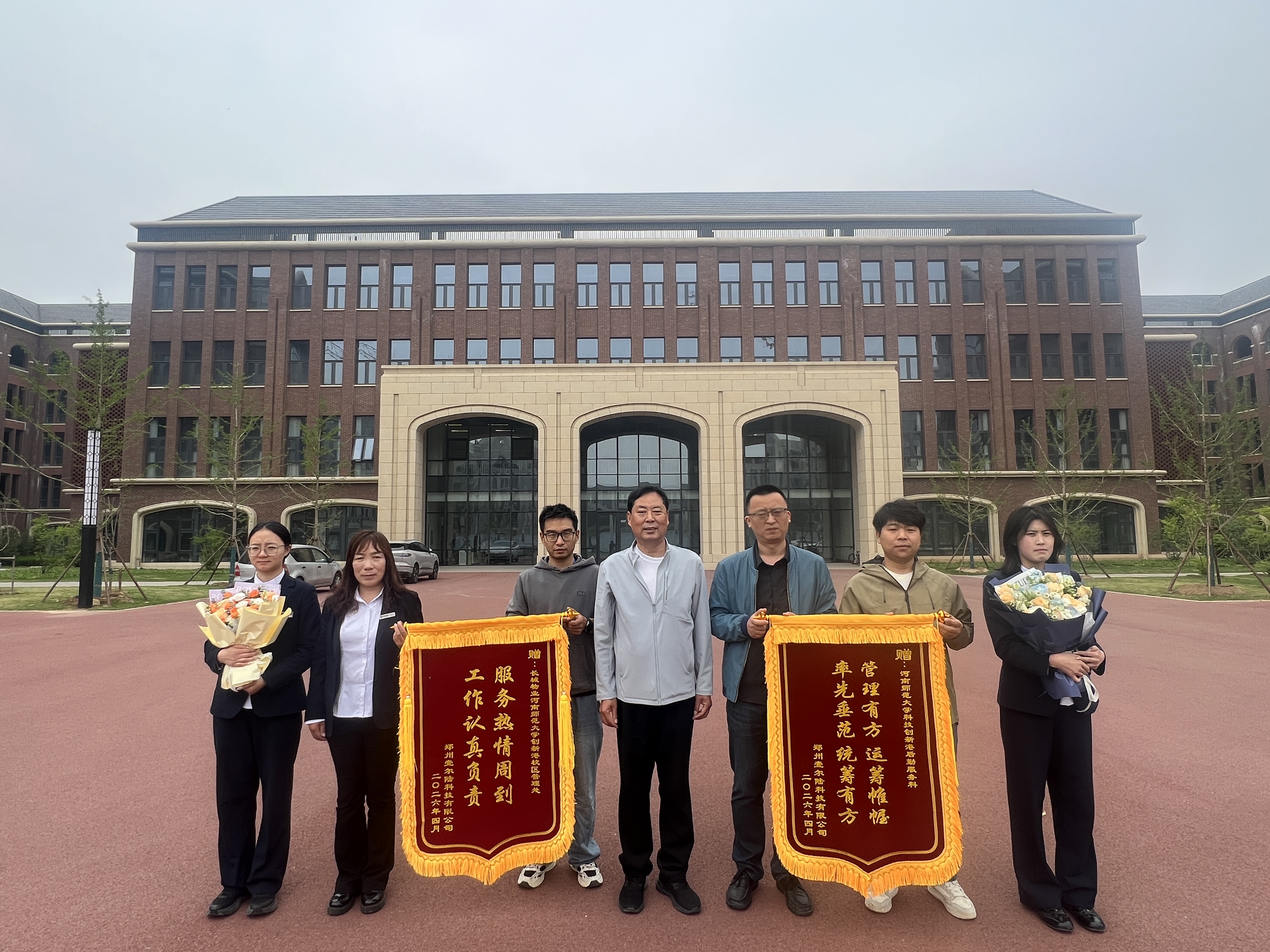 近日,科技创新港后勤服务科收到郑州壹尔陆科技有限公司负责人送来的锦旗。锦旗上“管理有方 运筹帷幄 率先垂范 统筹有方”“服务热情周到 工作认真负责”等内容,真实表达了壹尔陆科技有限公司此次赴我校科技创新港参加河南省教育信息化协会智慧教育专业委员会成立大会暨教育数智化发展大会的真切体会和真诚谢意。