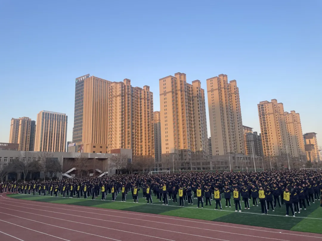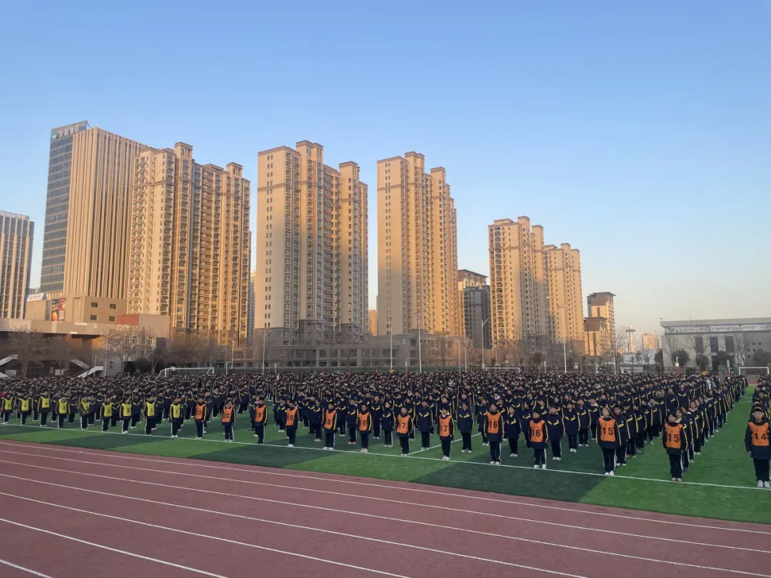 2025年1月9日下午,冬日暖阳,河南师范大学附属外国语学校的校园内充满了活力与激情。一场旨在推广中华传统武术文化、促进学生身心健康发展的武术操评比活动在操场上隆重举行。