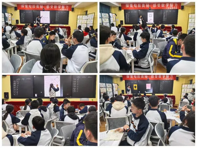 为了激发学生对数学的学习热情,精心培育他们的创新思维与团队合作能力,河南师范大学附属外国语学校八年级数学组近日成功举办了“勾股定理趣味竞赛”,本次活动以“探索勾股奥秘,感受数学魅力”为主题,旨在引领学生们深入了解、探索勾股定理,让学生领略数学的独特魅力,进而全面提升学生的逻辑思维能力、激发创新意识的火花、增强团队合作意识的凝聚力。