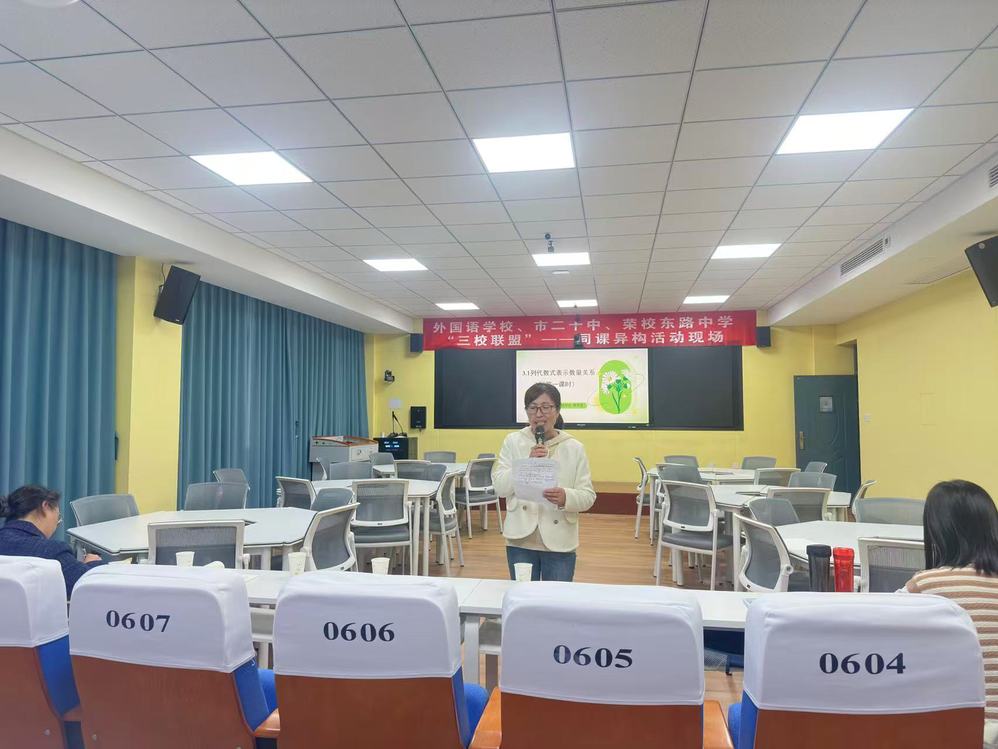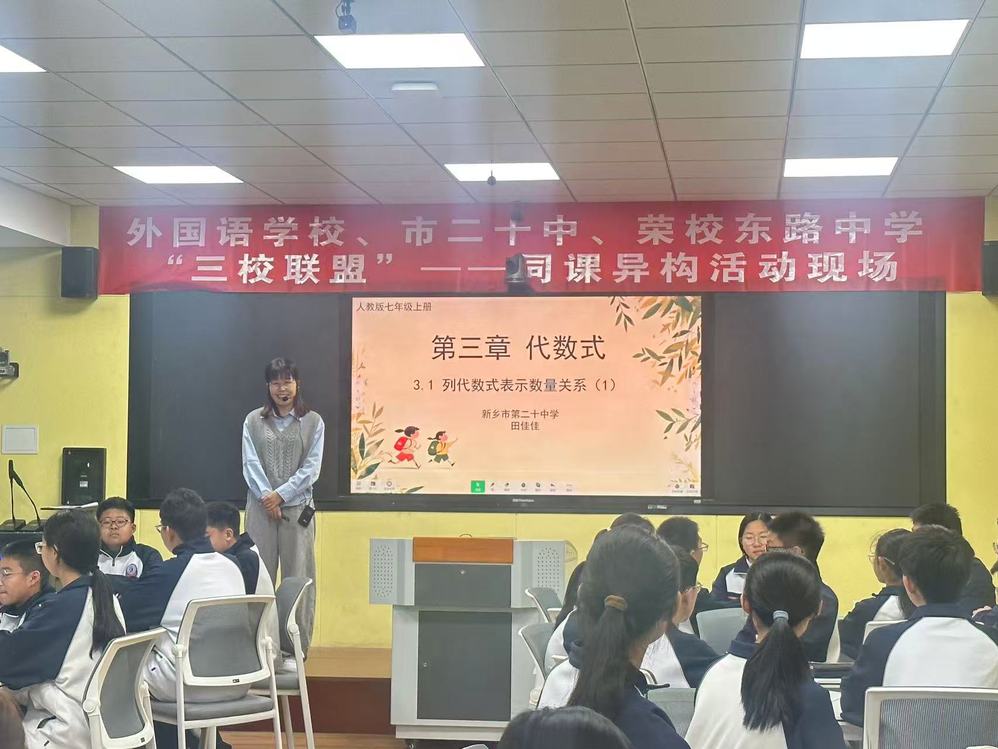 10月16日下午,河南师范大学附属外国语学校、新乡市第二十中学、河南师范大学附属荣校东路中学,按照三校拟定的联动发展实施方案,聚焦“上好每一节常态课”,联合举行了“校际同课异构”活动。