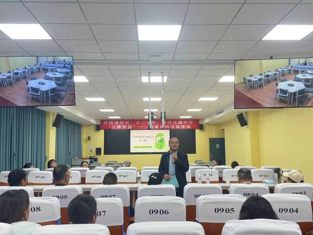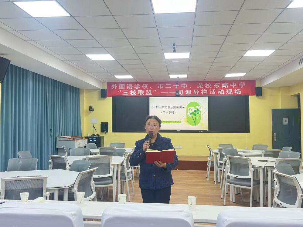 三位教师上课之后,外国语学校数学教研组长耿翠玲老师,市二十中学数学教研组长娄本丽老师,荣校东路中学数学教研组长郜竹桂老师,工程学院附中王晓玲老师,结合三位老师的上课情况,分别进行了评课。作为本次活动的主办方,河南师范大学附属外国语学校席明刚校长,结合三校联动发展和今天活动的开展情况进行了发言。