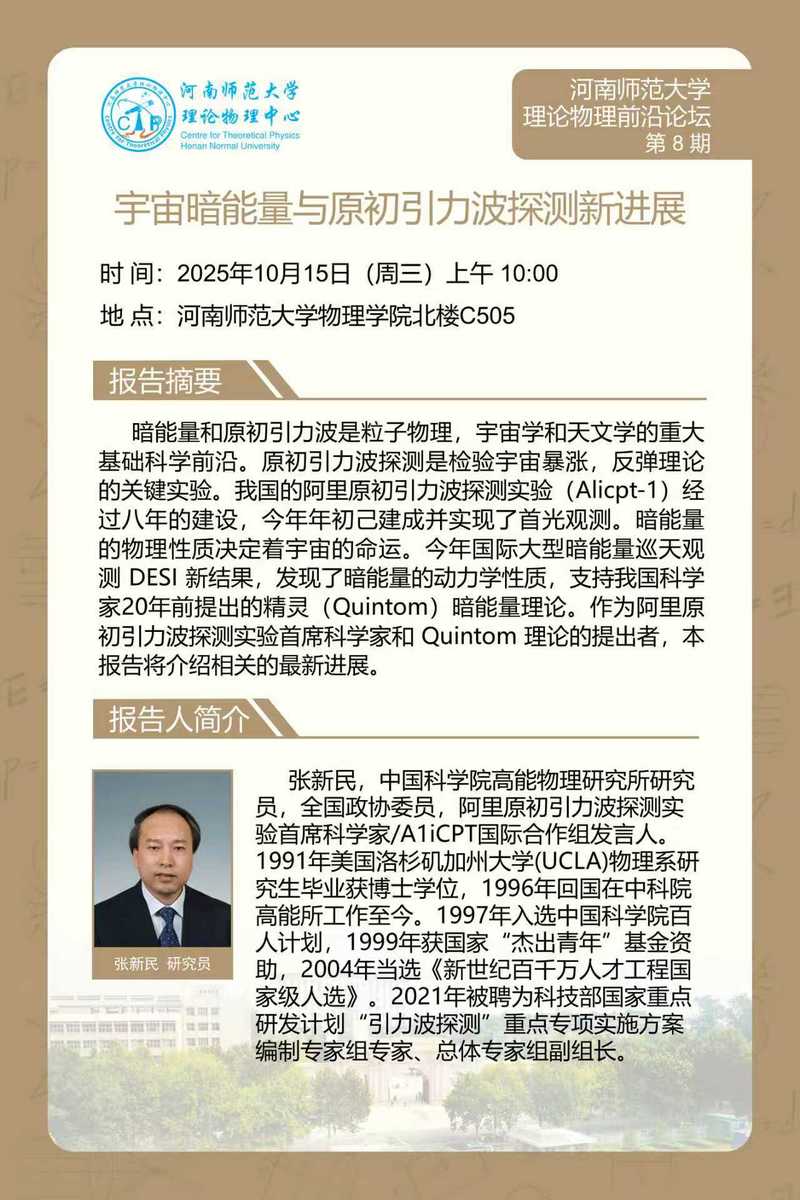 前沿论坛:宇宙暗能量与原初引力波探测新进展